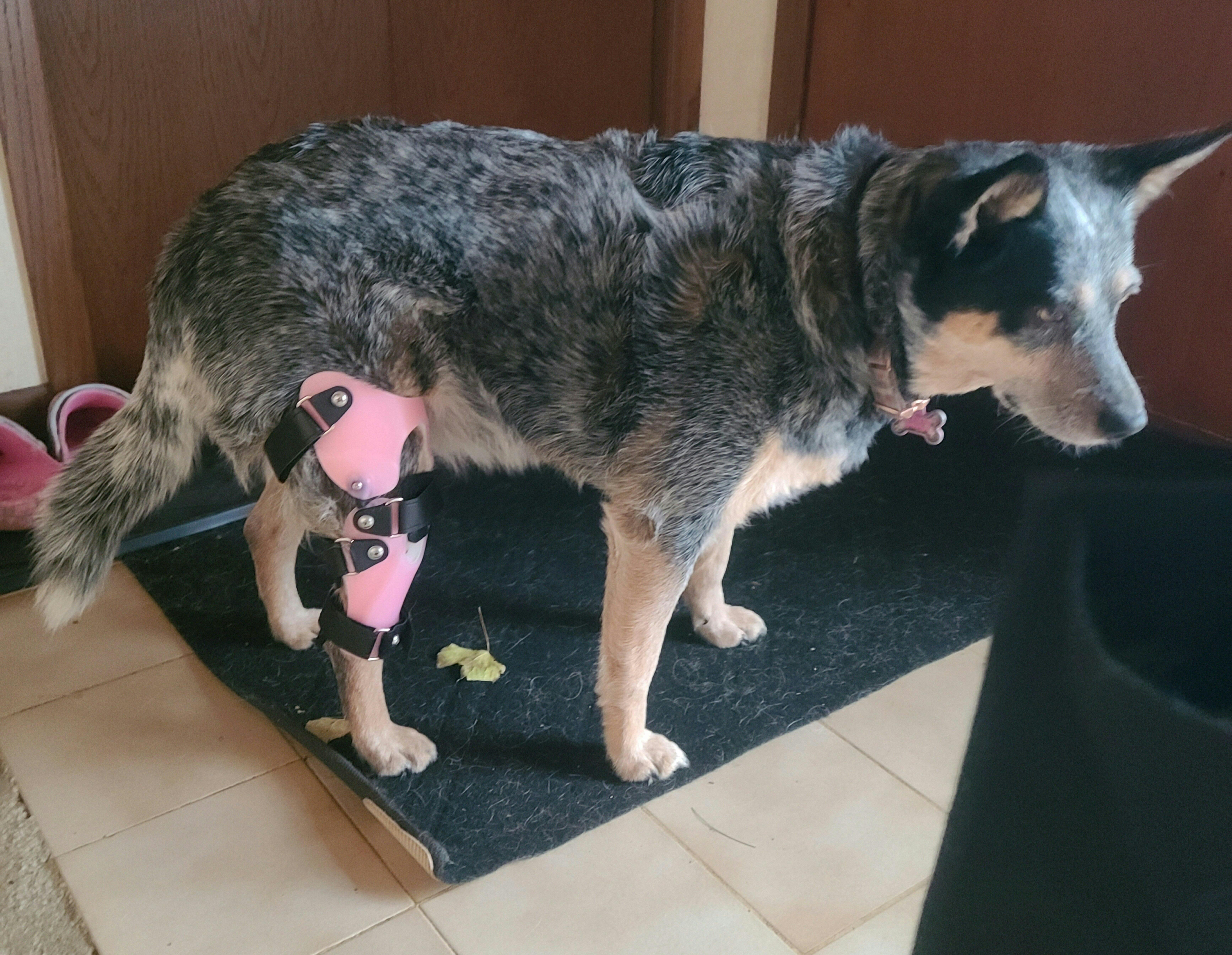 Thank you to everyone involved in the process of making Jasper's leg brace. He has a badly torn CCL and this is helping him get around. Much appreciation from him and us.